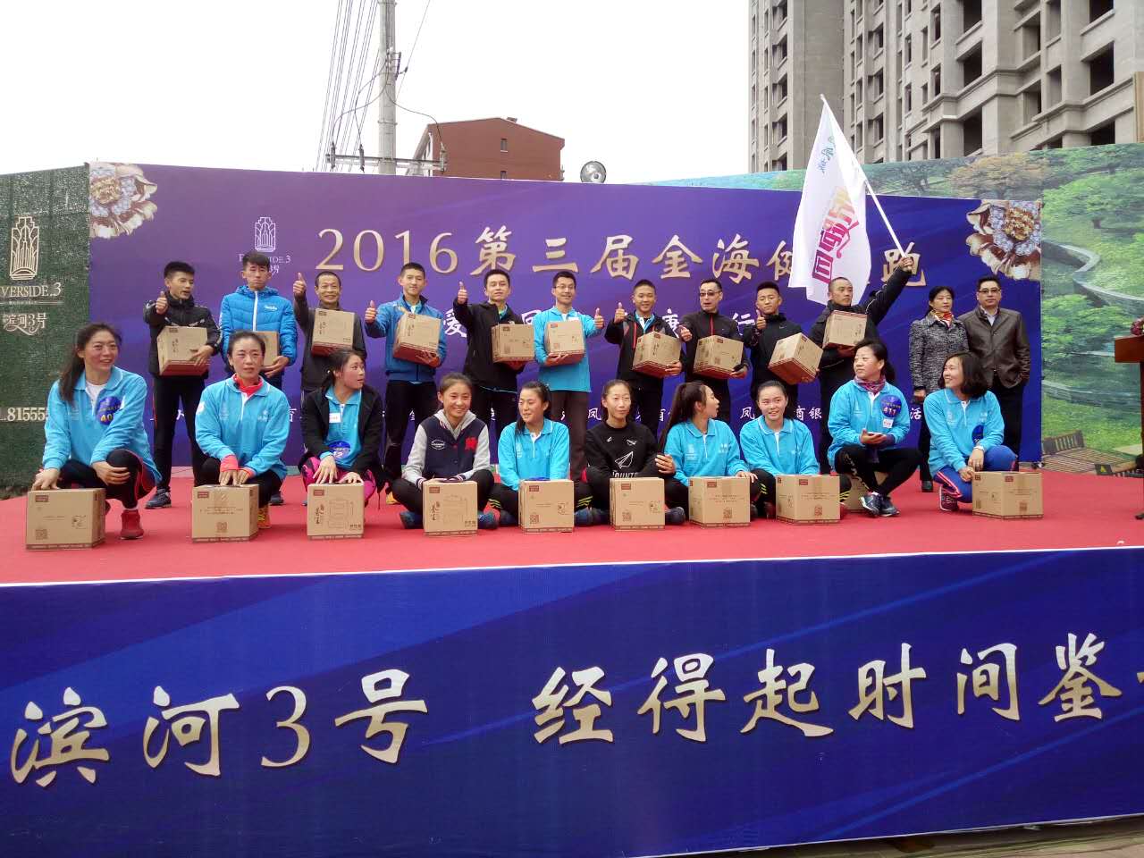 金海健康跑已舉辦兩年,每年舉辦一屆,2016年是第三屆金海健康跑,因此得到了鳳城市政府相關(guān)單位的大力配合,這是一項(xiàng)開展全民健身志愿服務(wù)、倡導(dǎo)群眾健康跑健身的體育競技活動(dòng)?;顒?dòng)中,有鳳城五中學(xué)生長跑隊(duì)、鳳城農(nóng)商行長跑隊(duì)、鳳城悅跑團(tuán)長跑隊(duì)、以及群眾自發(fā)組織的長跑隊(duì)伍。大家穿著由金海濱河3號(hào)提供的整齊的服裝,賽出友誼,賽出健康!鳳城交警支隊(duì)出警四十余人,為大賽疏導(dǎo)交通,確保比賽安全!鳳城電視臺(tái)等多家媒體到場對(duì)此次健康跑活動(dòng)做了獨(dú)家報(bào)道。