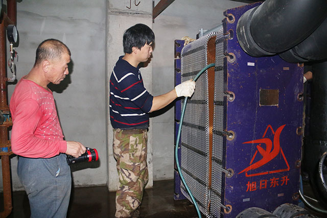 11月16日晚,由于承擔濱江三號A區(qū)的低區(qū)(6#、7#、8#、9#、10#、15#、16#、17#、18#樓16層以下)供暖任務(wù)的換熱站內(nèi)板式換熱器出現(xiàn)滲漏故障,熱力公司于17日早上9點停供后組織搶修。為確保濱江3號小區(qū)業(yè)主能快速恢復(fù)供暖,熱力公司立即啟動應(yīng)急預(yù)案,組織人員積極搶修濱江3號換熱站,全力以赴做好維修工作。對部分換熱站板換進行清洗,對滲漏的板片封閉膠條進行復(fù)位,同時還檢查板換有無滲漏情況。