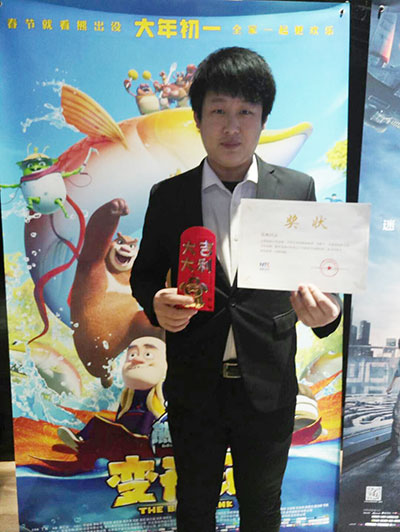 金海大廈影院員工張鵬被遼寧中影北方院線授予“最美電影人”稱號