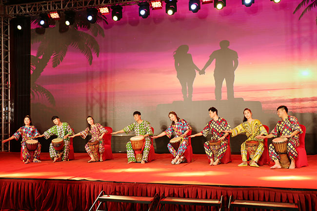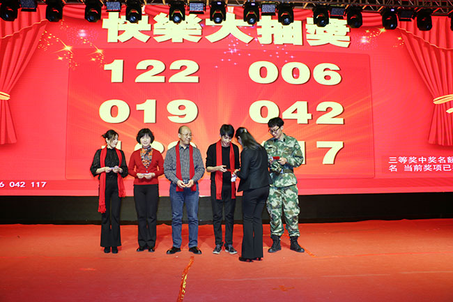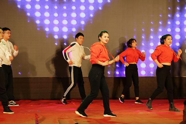 金海集團(tuán)員工登臺,進(jìn)行了一場匯聚舞蹈、歌曲等時尚新穎充滿正能量和節(jié)日溫暖的聯(lián)歡匯演,并穿插抽獎活動?;顒尤谈叱钡?,驚喜連連。