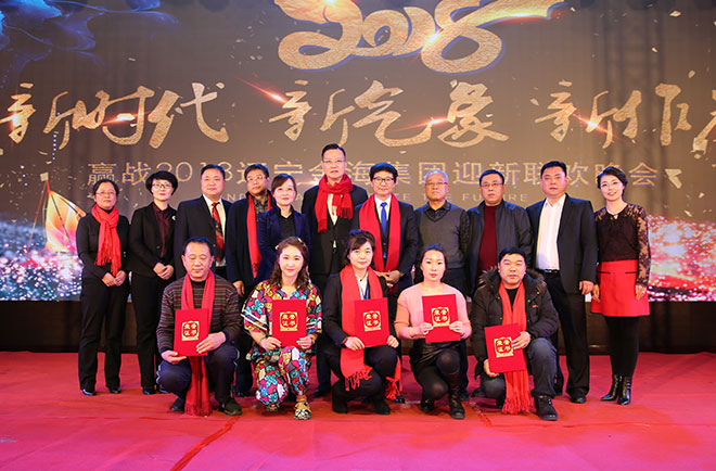 遼寧金海集團(tuán)領(lǐng)導(dǎo)與2017年三等獎獲得者合影