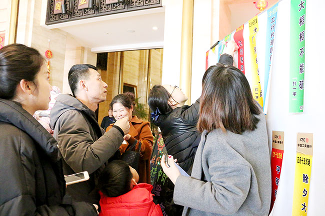 正值元宵佳節(jié),3月2日下午,經(jīng)營中心聯(lián)合工商銀行鴨綠江支行在金海濱江3號售樓處大堂準(zhǔn)備了50多個燈謎供君猜賞,到訪即可參與“猜燈謎,贏好禮”活動。
