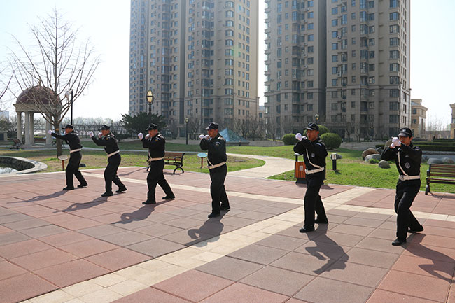 本次“早集訓(xùn)”由濱江3號(hào)小區(qū)保安隊(duì)集中演示早訓(xùn)隊(duì)列和擒敵拳術(shù)動(dòng)作口令、執(zhí)勤交班和例會(huì)流程、儀容儀表整理標(biāo)準(zhǔn)等,全體保安做到一個(gè)口令一個(gè)動(dòng)作,以飽滿的精神風(fēng)貌展示了保安隊(duì)伍的素質(zhì)教育和業(yè)務(wù)能力。