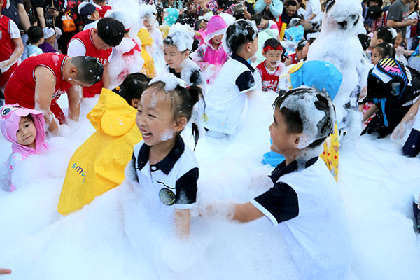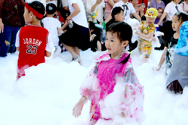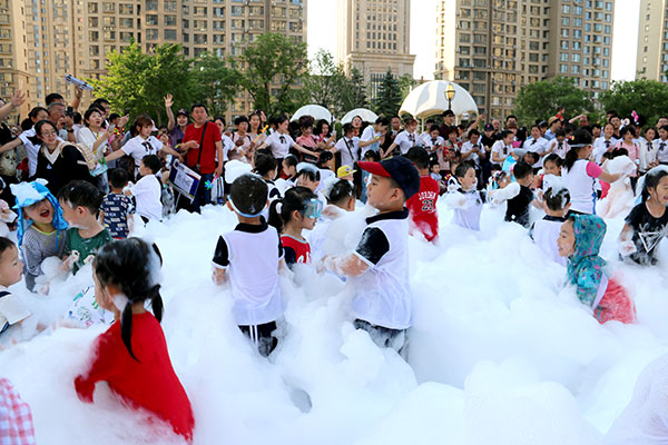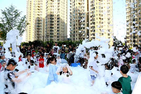 終于到了孩子們最期待的泡泡盛宴環(huán)節(jié),寶寶們爭先恐后、不顧一切地沖入泡泡的世界,果真泡泡的魅力無限大呢!在漫天雪花似的泡泡盛宴中,孩子奔跑、大笑、尖叫!體驗著從未有過的快樂時光!超大功率的泡泡機(jī)將噴射出泡泡,瞬間充滿整個廣場,從天而降的泡泡也讓您感受最涼爽的夏天!