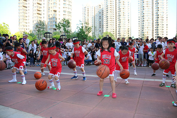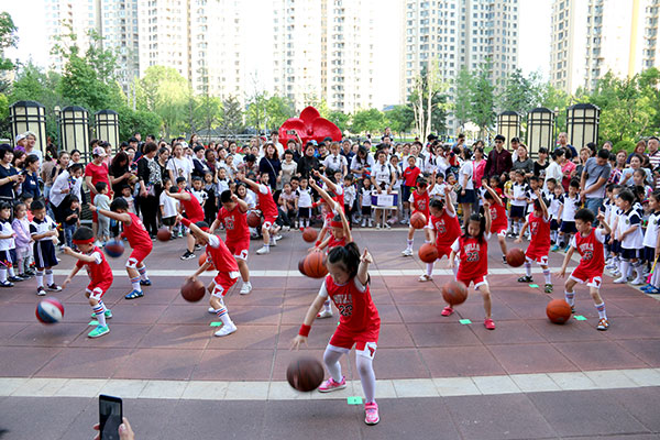 活動以恩舟教育寶寶們的籃球秀拉開了帷幕,在音樂的伴奏下,只見籃球在這些小朋友手里揮來揮去,萌娃們跟隨著旋律變換隊形,用右手拍球、左手拍球等方法展示自己的基本功,讓前來觀看的大人都自嘆不如。