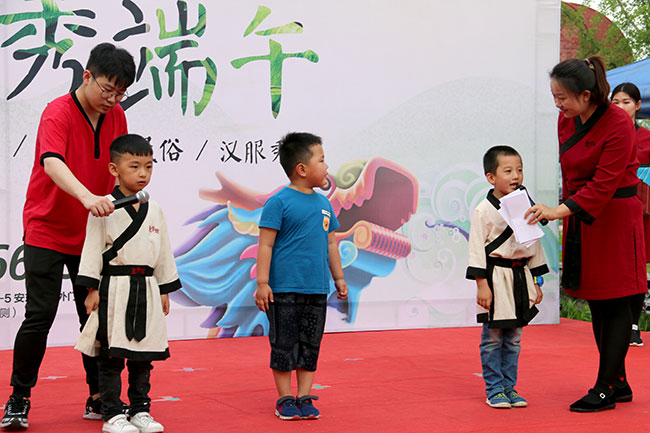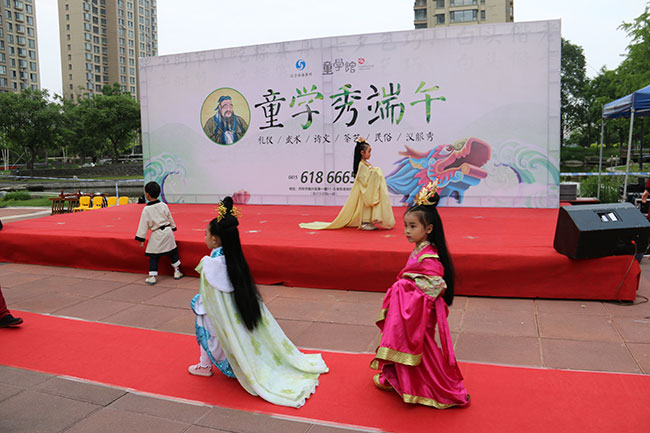 小朋友除了體驗(yàn)到端午節(jié)的傳統(tǒng)習(xí)俗之外,還會(huì)欣賞到“童學(xué)拳”“茶道”“聲律啟蒙”等表演,并有機(jī)會(huì)親身體驗(yàn)“漢服”的美感,參與舞臺(tái)走秀。