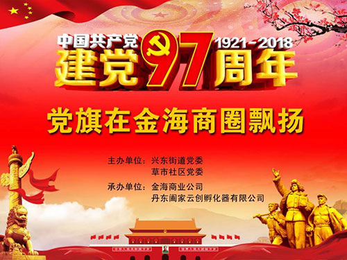 6月27日,由興東街道黨委、草市社區(qū)黨委主辦,由金海商業(yè)公司、丹東闔家云創(chuàng)孵化器有限公司承辦的慶祝中國共產黨建黨97周年“黨旗在金海商圈飄揚”大型活動,在金海商業(yè)廣場女人街云創(chuàng)空間隆重舉辦。