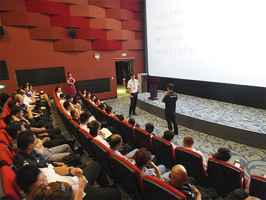 為提升服務(wù)標(biāo)準(zhǔn),強(qiáng)化服務(wù)意識(shí),給金海業(yè)主和服務(wù)單位提供優(yōu)質(zhì)服務(wù),樹立良好的企業(yè)形象。8月11日上午,物業(yè)公司聯(lián)合金海大廈在2號(hào)影廳集中開展服務(wù)禮儀專項(xiàng)培訓(xùn),特聘請(qǐng)遼東學(xué)院林教授主講。物業(yè)各住宅管理部、物業(yè)商業(yè)部門、綜合管理部、客服中心、品質(zhì)部及金海大廈員工近百人參加了培訓(xùn)。