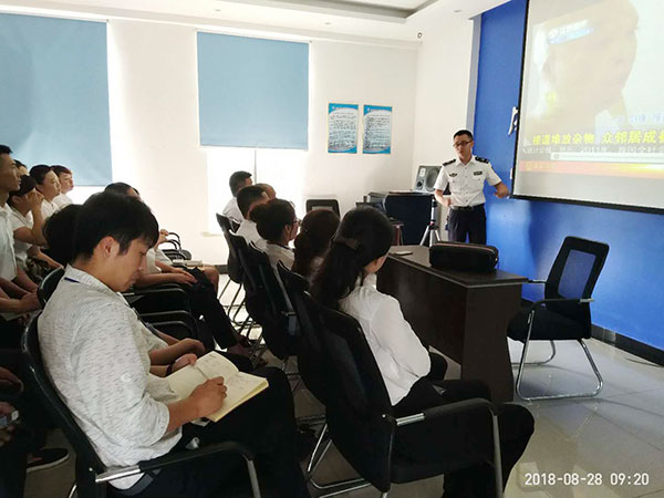2018年8月28日上午9點(diǎn),物業(yè)公司特聘請丹東市政安消防培訓(xùn)中心房教官,為各部門經(jīng)理、商業(yè)項(xiàng)目經(jīng)理、各區(qū)保安隊(duì)長以及保安班長,針對哈爾濱火災(zāi)事故開展消防培訓(xùn),吸取經(jīng)驗(yàn)教訓(xùn),提高防火安全意識(shí)。