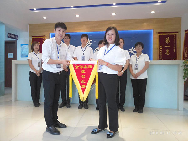 9月14日下午,集團(tuán)辦公室將一面嶄新的“金海集團(tuán)流動紅旗”,授予了金海物業(yè)濱江3號管理部經(jīng)理金龍及全體工作人員,以鼓勵他們在首個月度綜合評比中取得的優(yōu)秀成績。這是自8月中旬集團(tuán)開展綜合檢查評比活動以來,向優(yōu)勝單位頒發(fā)的第一面流動紅旗。