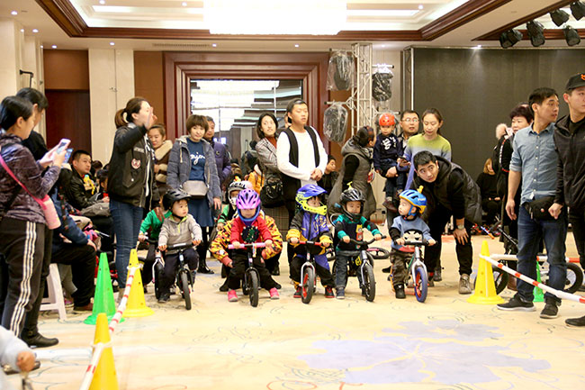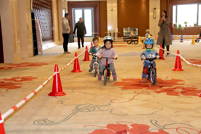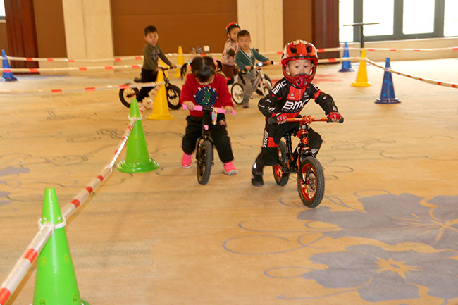 比賽開始了,1-5歲的小朋友們在比賽中一顯身手,現(xiàn)場有專業(yè)教練指導(dǎo)寶寶們體驗(yàn)騎行。寶寶們一點(diǎn)都不膽怯,前仆后繼,很快熟悉了滑步車的技巧,飛快地通過一個(gè)個(gè)彎道?,F(xiàn)場氣氛非凡,圍觀的家長們也為小朋友們加油。