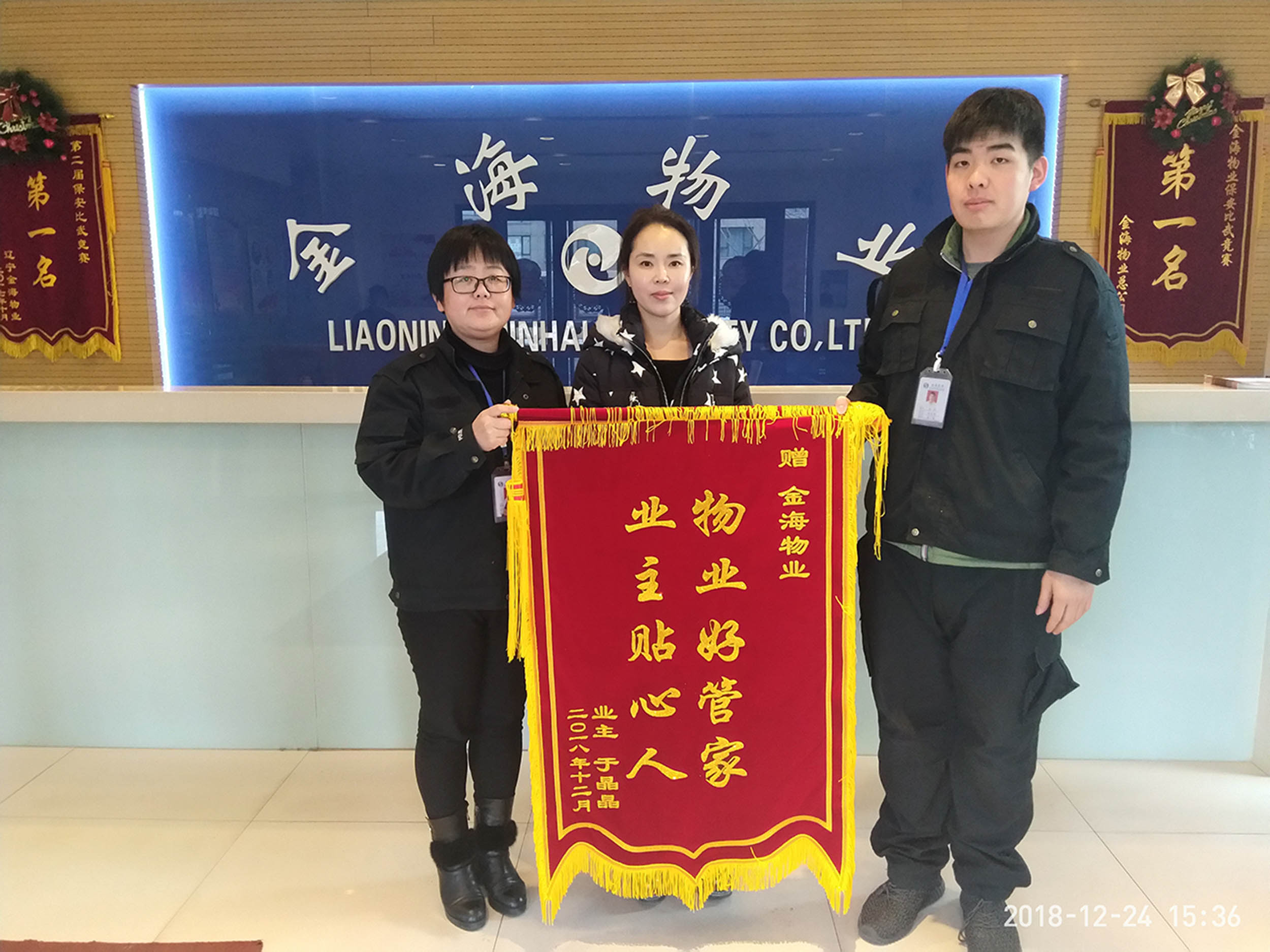 12月24日,業(yè)主于晶晶來到濱江3號管理部,送來了一面寫有“物業(yè)好管家,業(yè)主貼心人”的錦旗,向所有參加搶險的金海物業(yè)工作人員表達自己深深的敬意和謝意!業(yè)主于晶晶感動地說:“如果沒有金海物業(yè),我們家和鄰居家的損失將無法估量!正是你們的忘我付出和雷厲風行,讓我們備受感動!住在金海真好,金海物業(yè)實至名歸!”