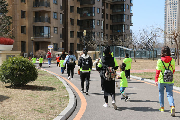 早上8:30,家長孩子們?cè)阢y帆老師的帶隊(duì)下,從江邊玫瑰廣場(chǎng)開始,徒步到達(dá)濱江3號(hào),家長孩子手牽手,或孩子在前,健步如飛,親情與快樂元素點(diǎn)燃了現(xiàn)場(chǎng)的氛圍。