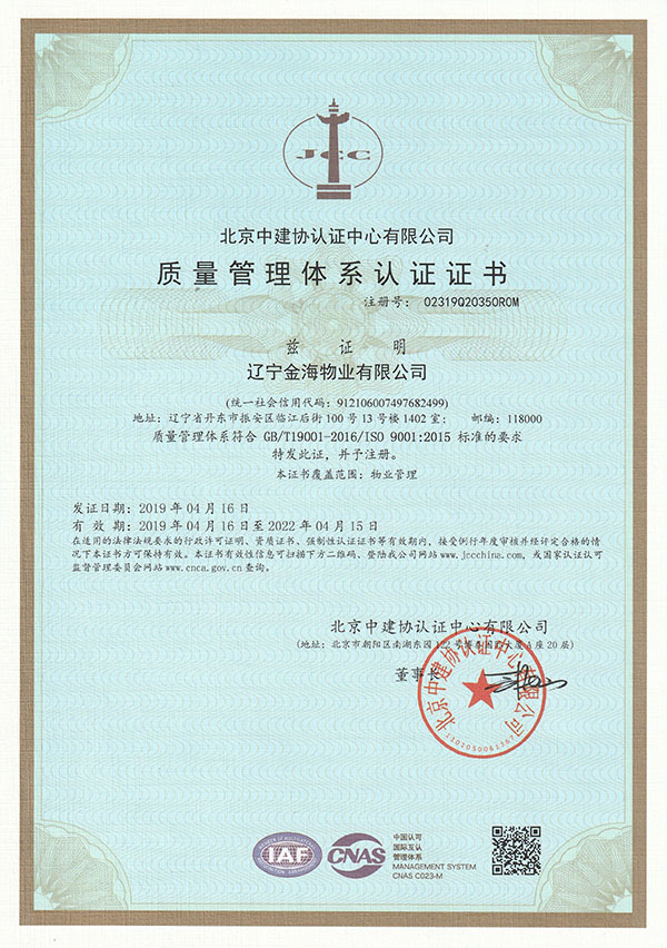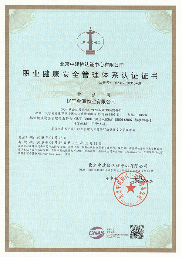 在集團(tuán)各級領(lǐng)導(dǎo)的大力支持下,經(jīng)過物業(yè)全體員工的不懈努力,遼寧金海物業(yè)順利通過中建協(xié)專家審核小組的審核,并于2019年4月20日獲得認(rèn)證公司頒發(fā)的ISO9001質(zhì)量管理體系認(rèn)證證書、ISO14001環(huán)境管理體系認(rèn)證證書和OHSAS18001職業(yè)健康安全管理體系認(rèn)證證書,得到了認(rèn)證公司的充分肯定和認(rèn)可。認(rèn)證的獲得不僅使公司內(nèi)部管理更加市場化,同時也能為公司在市場競爭中獲取優(yōu)勢,助力物業(yè)項目的競投標(biāo)。