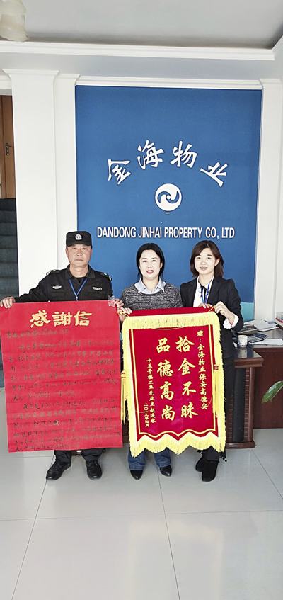 我是金海溫泉小鎮(zhèn)15號(hào)樓2單元603業(yè)主,我叫趙連榮,2019年4月7日下午,我在小區(qū)內(nèi)無(wú)意間發(fā)現(xiàn)兜里的錢包不知什么時(shí)候丟失了,里面裝有我準(zhǔn)備買冰箱的錢,現(xiàn)金共12000元,還有銀行卡、駕駛證、工資卡、身份證等貴重物品,心里很著急,是否能找到心里確實(shí)沒(méi)底。錢包是下午四點(diǎn)多鐘遺失的,大概六點(diǎn)多鐘,小區(qū)保安高德安與我聯(lián)系,他找到了我,把錢包和證件全部交到我手上,他連錢包內(nèi)有多少錢都沒(méi)數(shù),而是通過(guò)身份證信息急于找到失主,這種拾金不昧的精神實(shí)在高尚,可敬!