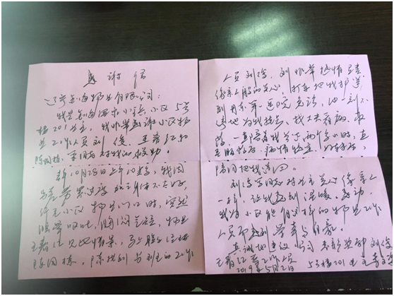 我是金海溫泉小鎮(zhèn)5號(hào)樓201業(yè)主,我非常感謝小區(qū)物業(yè)工作人員劉俊、王春紅和陳國(guó)棟等同志對(duì)我的救助。去年10月28日上午十點(diǎn)多,我因出差勞累過(guò)度,加上身體不太好,行走在小區(qū)物業(yè)門口時(shí),突然眩暈、嘔吐、胸悶氣短。金海物業(yè)員工王春紅見(jiàn)此情景,馬上聯(lián)系保安隊(duì)長(zhǎng)陳國(guó)棟找到了當(dāng)班保安員劉俊。劉俊非常熱情,就像親人般地關(guān)心我,打車把我護(hù)送到丹東市第一醫(yī)院就診。到醫(yī)院后他一刻都不停地為我掛號(hào)、找大夫、取藥,一直陪我長(zhǎng)達(dá)兩個(gè)小時(shí)。直到服藥后,我病情穩(wěn)定好轉(zhuǎn),他才把我送回家。