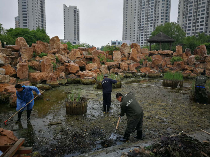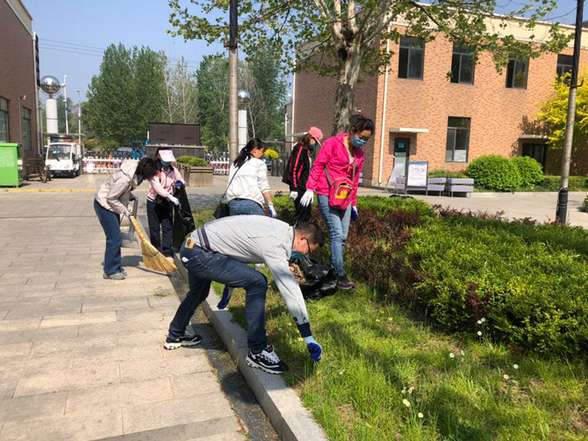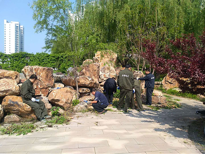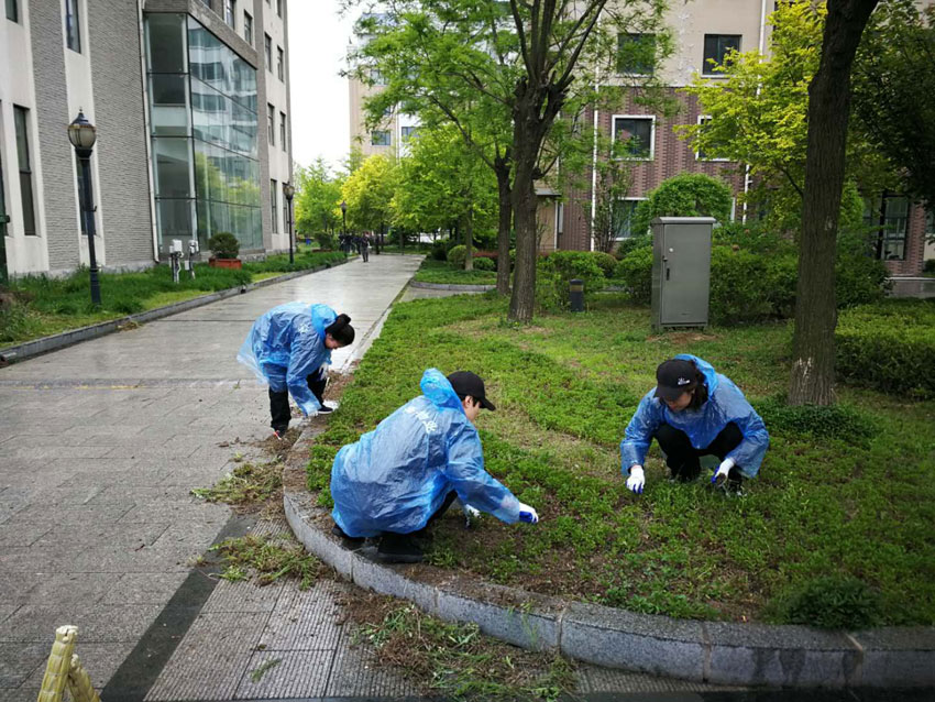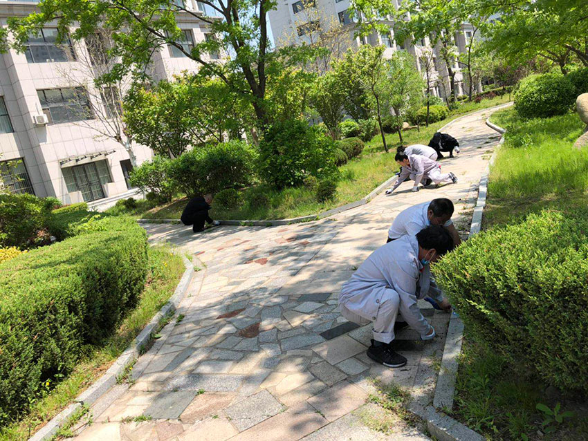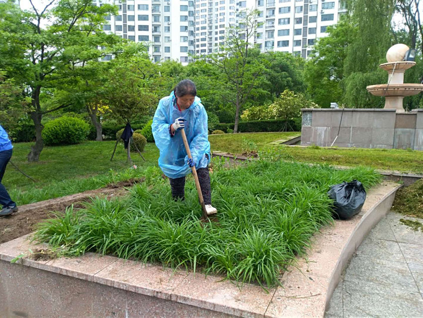 金海員工們劃片分區(qū),各領(lǐng)任務(wù),迅速投入園區(qū)清掃、園林拔草、園林維護(hù)各項緊張勞動當(dāng)中。