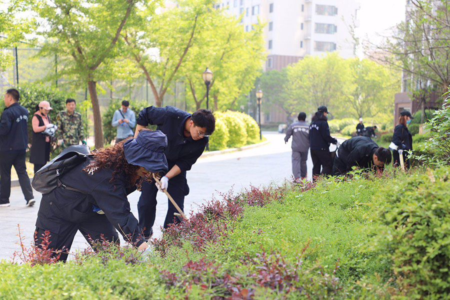 原來,金海物業(yè)新近承接了新區(qū)大型公務(wù)員小區(qū)——國門灣新世紀(jì)佳園,他們這是金海員工總動員,利用這個周六、周日全體去參加義務(wù)勞動!