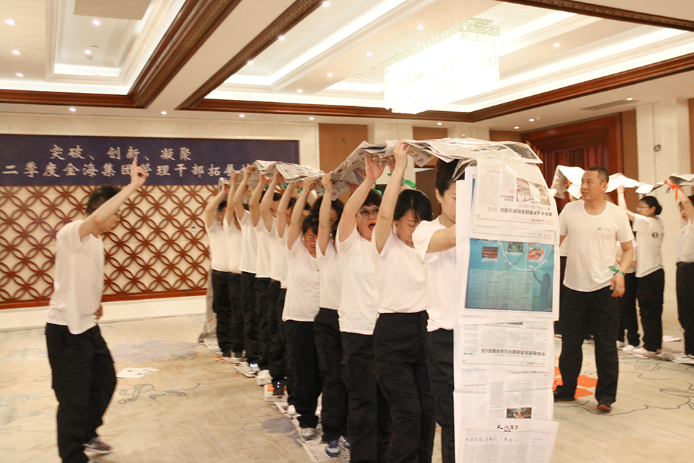 經(jīng)過(guò)一段時(shí)間的精心準(zhǔn)備,主題為突破、創(chuàng)新、凝聚的金海集團(tuán)管理干部能力拓展培訓(xùn)于6月5日下午在金海大廈舉行。此次培訓(xùn)由集團(tuán)辦公室和人力資源部共同籌備,歷時(shí)2個(gè)半小時(shí),大家齊心協(xié)力,精心組織,現(xiàn)場(chǎng)氣氛熱烈而有序,達(dá)到了預(yù)期的培訓(xùn)效果。來(lái)自集團(tuán)高管、直屬部門(mén)及分公司總助以上員工共50人參加了此次培訓(xùn)。