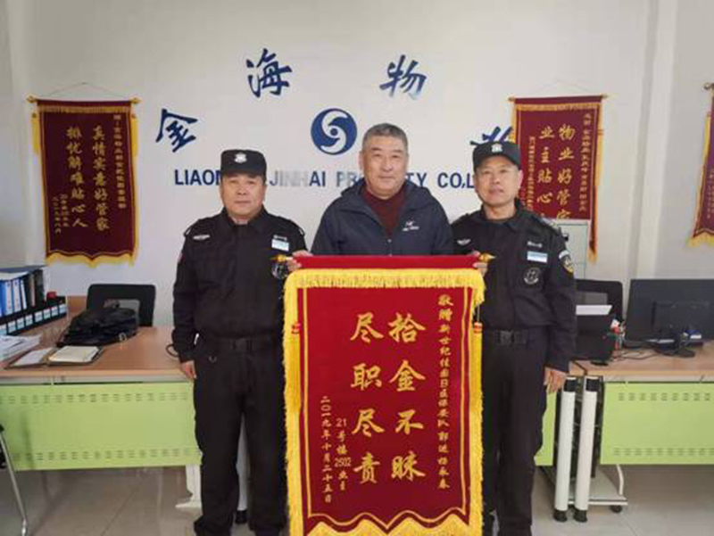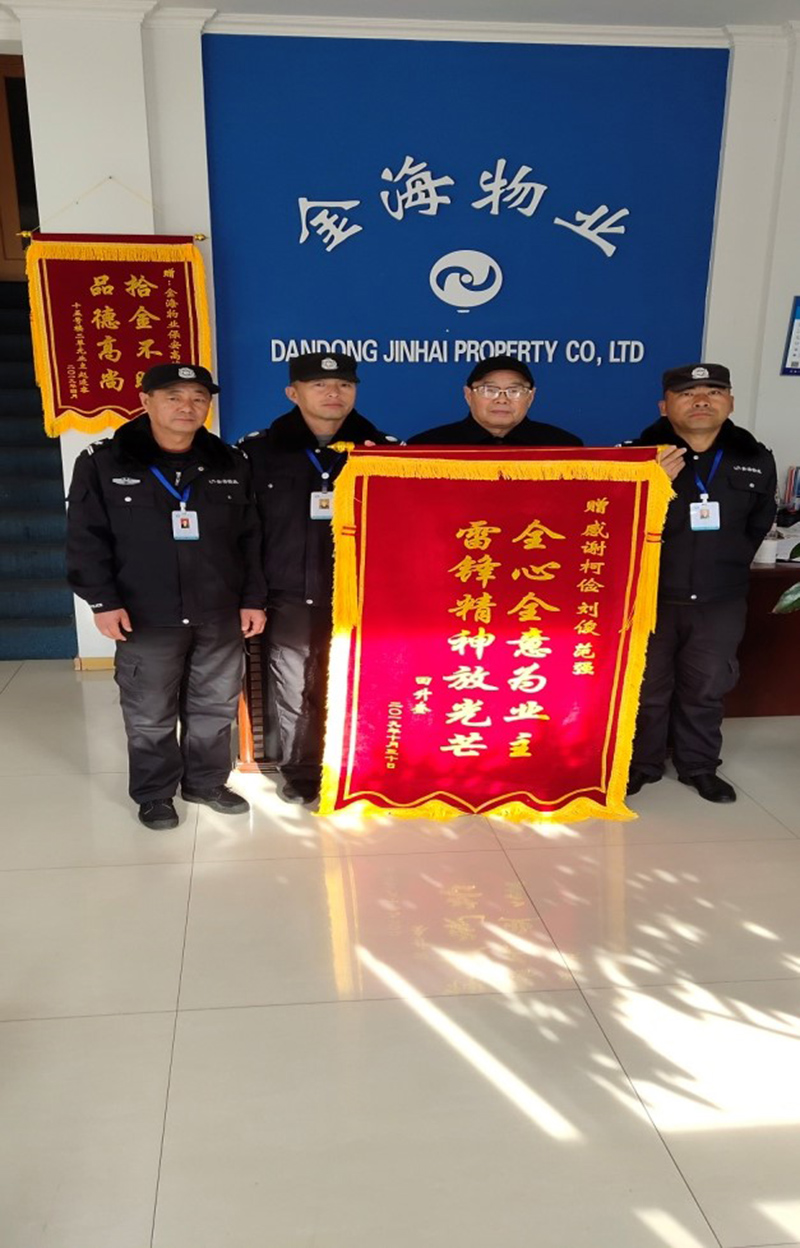 第二天,郭進(jìn)班長吩咐各崗執(zhí)勤保安,如果看到業(yè)主,一定要提醒他去取回錢包。在大家的努力下,業(yè)主在第二天上午就取回了丟失的錢包。業(yè)主對(duì)金海保安員的感激之情溢于言表,給新世紀(jì)佳園管理部送來了錦旗,表達(dá)錢包失而復(fù)得的激動(dòng)心情和感激之意。