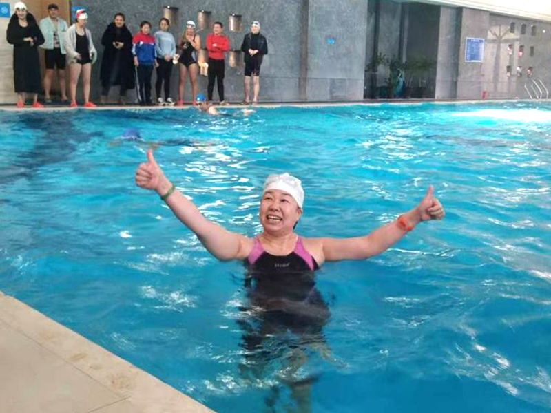 隨著一聲哨響,比賽正式開始!選手們雖然并非職業(yè)運(yùn)動(dòng)員,但他們各個(gè)精神飽滿,在水中劈波斬浪奮勇爭先,激烈角逐,引來了圍觀人員的陣陣喝彩和掌聲。決賽現(xiàn)場人聲鼎沸,熱情高漲。年過半百的老人們速度驚人不輸年輕與活力。最為精彩的是小選手8歲的笑笑,別看她年紀(jì)小,進(jìn)入泳池像一條魚兒穿梭其中。