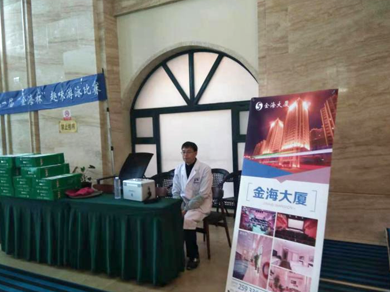 金海大廈總經(jīng)理遲慧慧女士到現(xiàn)場為選手加油鼓勵(lì)并發(fā)表講話。參賽者小到8歲的孩童,長到70歲的耄耋老人。比賽分為老年組、青年組50米蛙泳,男子組、女子組25米,自由泳和男女混合接力50米蛙泳三個(gè)項(xiàng)目。為了確保比賽安全順利的進(jìn)行,大廈邀請了熙康體檢中心醫(yī)護(hù)人員,游泳教練兼救生員劉青云。劉教練在賽前講解安全注意事項(xiàng)以及比賽規(guī)則。