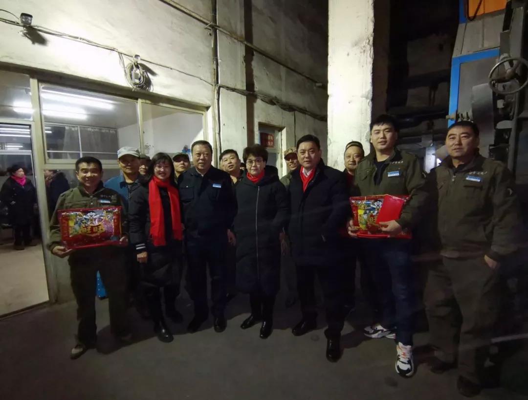 每到一處,領(lǐng)導(dǎo)們都會與堅守崗位的員工一一握手,詳細詢問他們的工作生活情況,感謝他們?yōu)榧瘓F的發(fā)展所作出的貢獻,并希望全體員工在新的一年里努力工作,再立新功。