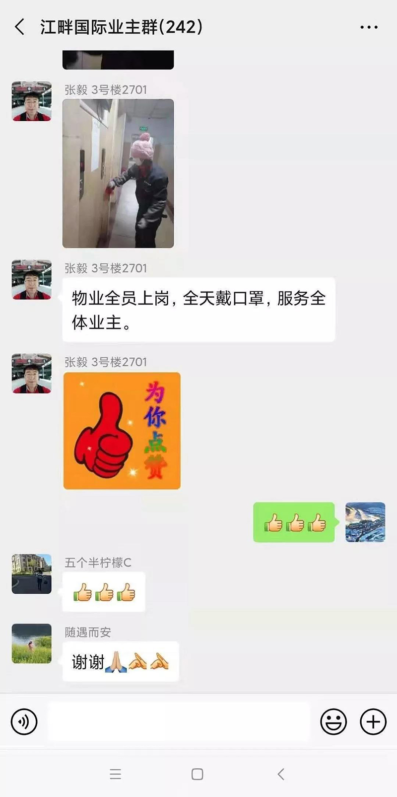 我們的物業(yè)工作人員也是普普通通的人,也有自己的家人,也有需要照顧的父母,也有身心疲憊需要休息的時(shí)候,也有對(duì)病毒的擔(dān)心,也會(huì)對(duì)健康憂慮,但是,他們義無(wú)反顧地投身工作,平凡而偉大!
