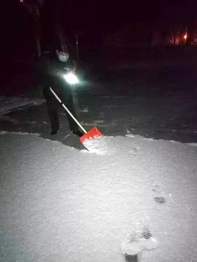 下雪了,物業(yè)人員早早來(lái)到園區(qū)掃雪。