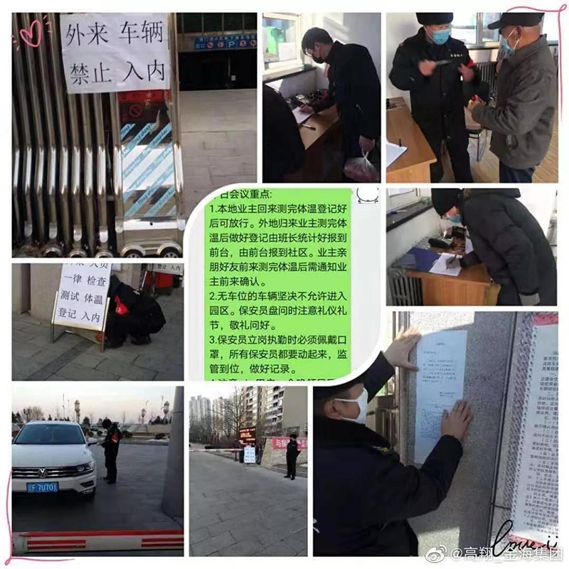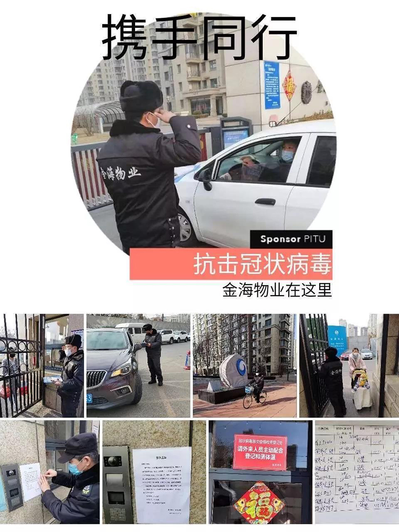 從領(lǐng)導(dǎo)到一線,所有金海物業(yè)管理人員正常上崗,調(diào)度部署,購(gòu)買發(fā)放消毒防疫物資,貼通知,協(xié)調(diào)解決客戶投訴,第一時(shí)間幫助有困難的人,還有做好宣傳動(dòng)員!