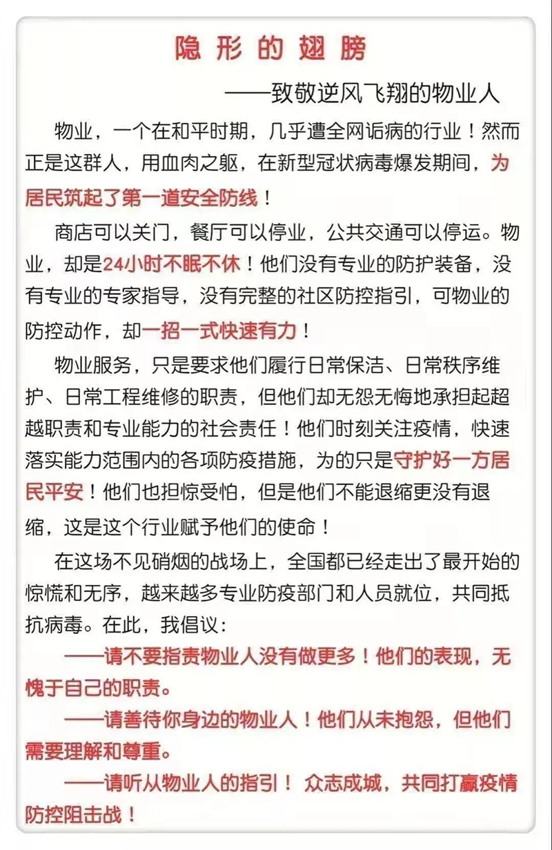 也向所有在這個(gè)特殊時(shí)期,奮戰(zhàn)在物業(yè)崗位上的工作人員們,致以深深的敬意!