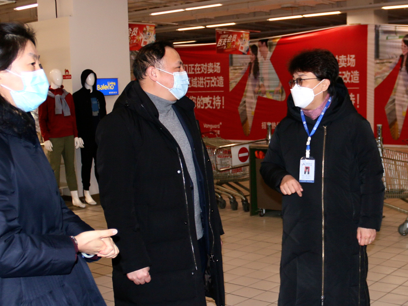 熊興勤副市長、張睿副市長一行深入金海商業(yè)廣場華潤萬家購物中心仔細(xì)詢問查看和了解情況。在一層華潤購物廣場,檢查詢問消毒設(shè)施的配備和使用情況;在華潤萬家超市,分別向超市相關(guān)人員細(xì)致了解經(jīng)營情況、客流量情況、線上外賣開展情況等,特別關(guān)注和強(qiáng)調(diào)了超市空調(diào)使用安全問題以及消毒防范措施等;在國美電器,現(xiàn)場對店員就防控疫情問題進(jìn)行了提問,并對店員所掌握的疫情防控知識和實施情況表示滿意。