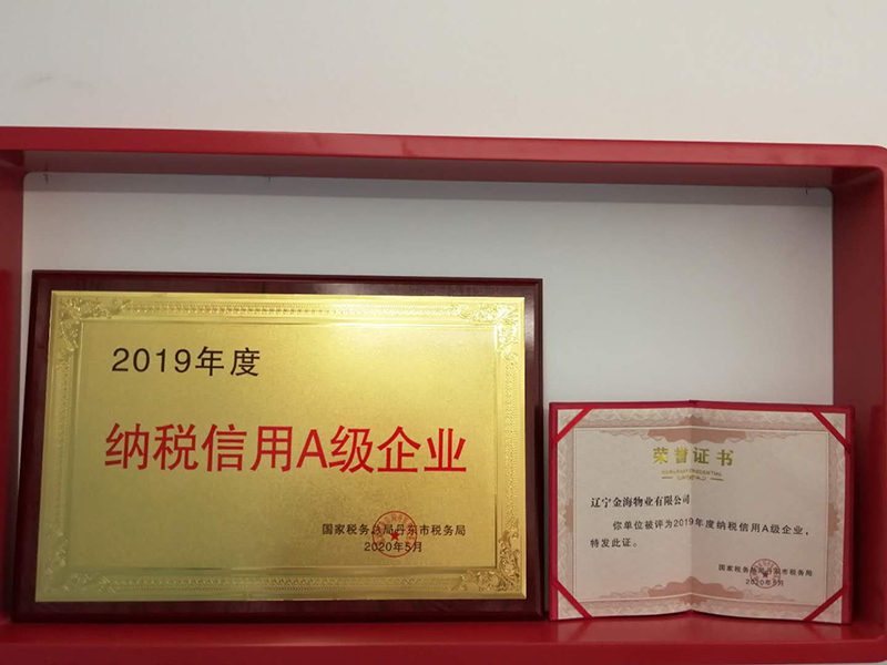 遼寧金海物業(yè)有限公司榮獲國家稅務總局丹東市稅務局頒發(fā)的“2019年度納稅信用A級企業(yè)”稱號。