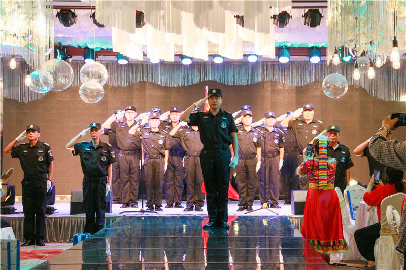 表演嘉賓多才多藝,用不同的藝術(shù)形式展現(xiàn)自己的風采,合唱、舞蹈等節(jié)目在舞臺上大放光彩。金海物業(yè)秩序維護部的成員,他們都是退伍軍人,他們不善言語,在這個特殊的日子用歌聲表達對中國共產(chǎn)黨的熱愛祝福。