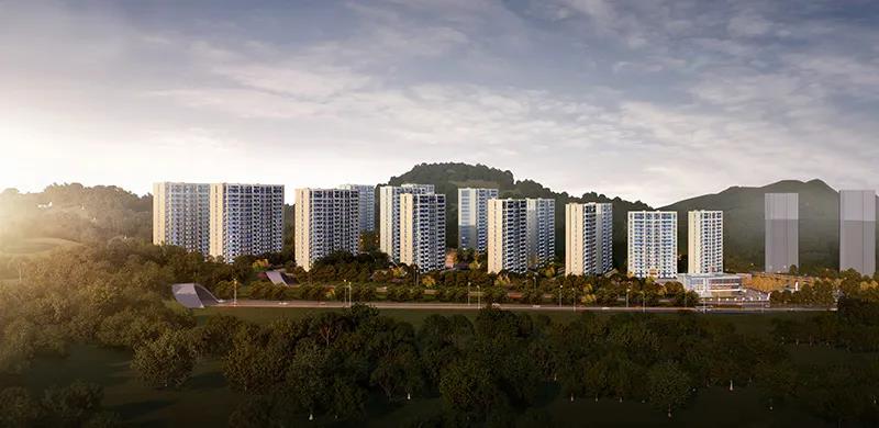 項(xiàng)目占地面積約5.594公頃,建筑面積約117474平方米,依山勢規(guī)劃建設(shè)14棟住宅樓,12棟為17層,2棟為18層小高層住宅,規(guī)劃容積率2.1,規(guī)劃綠化率36%。